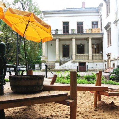 Sanierung und Umbau der 1872 erbauten, denkmalgeschützten Villa ’’Sankt Petersburg“ am historischen Waldpark Dresden; Kindertagesstätte für 160 Kinder mit 50 Krippenplätzen und 110 Kindergartenplätzen.